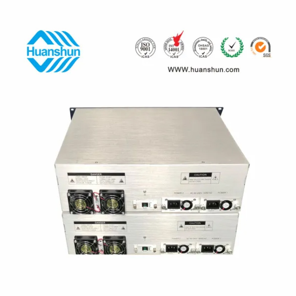 大功率光纖放大器 | YGF1564-16 | 19 " 3U標準機箱,-5 ~ +10 d Bm輸入,64路標稱規(guī)格(16、17、18、19、20、21、22、23、24dBm)放大輸出,并支持下調(diào)-2dB,安全連接模式,NF ≤ 5dB(0dBm時);內(nèi)置FWDM合波器,插播損耗 ≤ 1dB;雙模塊熱插撥電源,AC90 ~ 255V或DC-48V供電,RJ45標準網(wǎng)管(支持SNMP、WEB) |